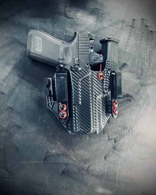The Nineteen Ops Nexus Series Sidecar Style Holster is designed for versatility and comfort, featuring a sleek, minimalist design that allows for easy access to your firearm while also providing a space for extra gear, such as a magazine. The holster typically includes adjustable retention and cant, ensuring a secure fit and customizable carry position. Made from durable materials, it offers both lightweight construction and robust protection. The sidecar style allows for efficient weight distribution, making it suitable for all-day wear. Ideal for concealed carry, this holster seamlessly integrates into a variety of outfits and activities, maintaining a low profile while ensuring readiness.