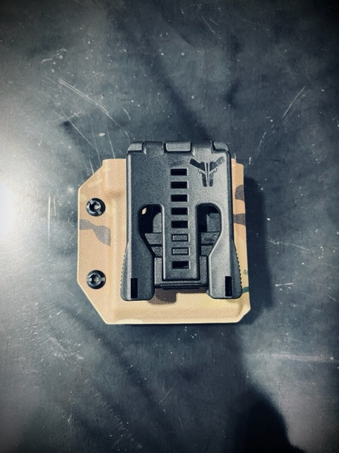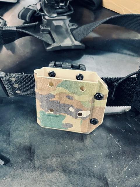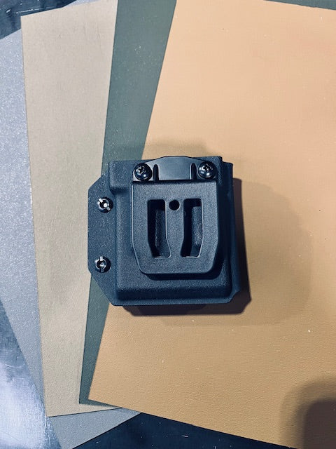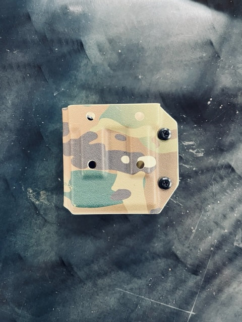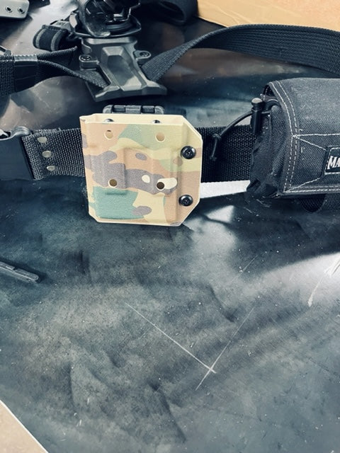 This 556/223/M4 Rifle Magazine Carrier is made of 0.080 Kydex, ensuring durability and secure carrying of your rifle magazines. Designed specifically for 556/223/M4 rifles, this carrier provides a precise fit for your magazines, allowing for quick access and efficient reloading. Improve your shooting experience with this expertly crafted magazine carrier.