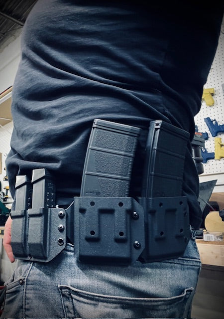 Our magazine carriers are constructed from high-quality materials for durability and longevity. They are designed to securely hold standard M4 rifle magazines and make it easy for you to quickly access them when you need them. Our Ambidextrous Designed Magazine Carriers are perfect for Right or left handed shooters'.