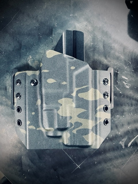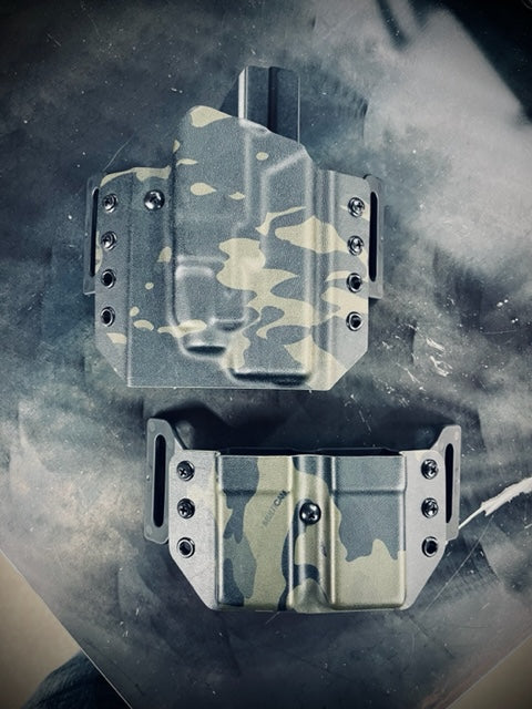 The Glock - light Bearing - OWB Holster and Double Magazine Carrier is a top of the line combination for all your carrying needs. Designed for maximum efficiency and comfort, our product ensures easy access to your firearm and extra magazine. Keep yourself prepared and safe at all times.