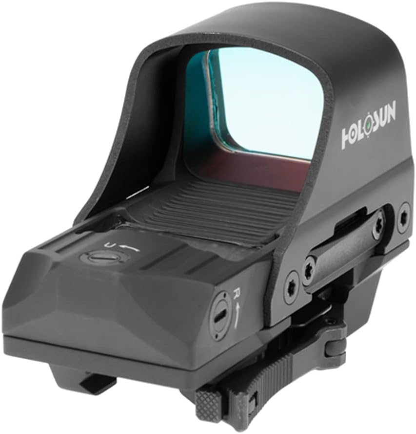 - HOLOSUN GREEN DOT SIGHT - The HE510C-GR sight is a versatile open reflex optic designed for long gun applications; It is at home on carbines, PCCs, and shotguns due to its durable design; This gun sight has an aluminum housing with titanium hood for added shock resilience and includes a QD absolute co-witness mount (1.41" dot height); This green dot sight is packed with Solar Failsafe, Shake Awake, MRS (Multi-Reticle System), Green Super LED with up to 50k hour battery life