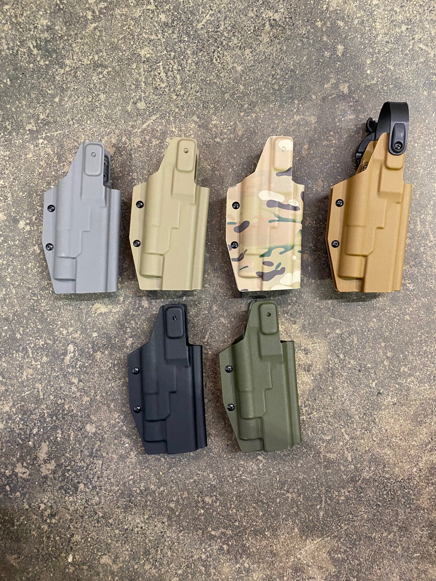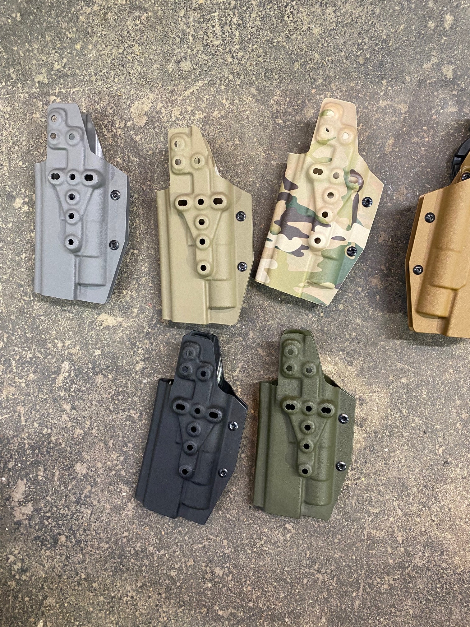 This OWB (outside-the-waistband) LEVEL 2 holster Shell that was designed to be extremely modular, tough, & modern. Made from a range of kydex .080 or 0.93 precision-formed Kydex. Holsters can accommodate slide mounted optics, threaded barrels, suppressor height sights < .500″, and select compensators.