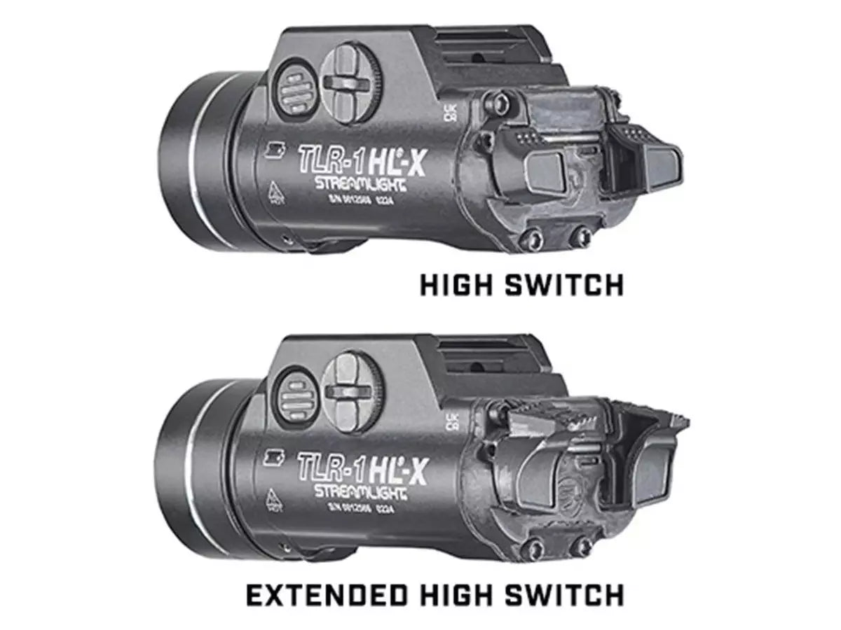 The TLR-1 HL®-X provides a powerful 1,500-lumen peripheral beam. It also features a front-loading battery compartment for rapid battery replacement without removing the light from the firearm. Includes "High" and "Extended High" rear paddle switches to suit your shooting style.