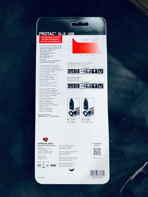 STREAMLIGHT PROTAC HPL 2L-X USB 500LUMENS; USES SL0B26 USB RECHARGEABLE BATTERY OR 2-CR123A BATTERIES