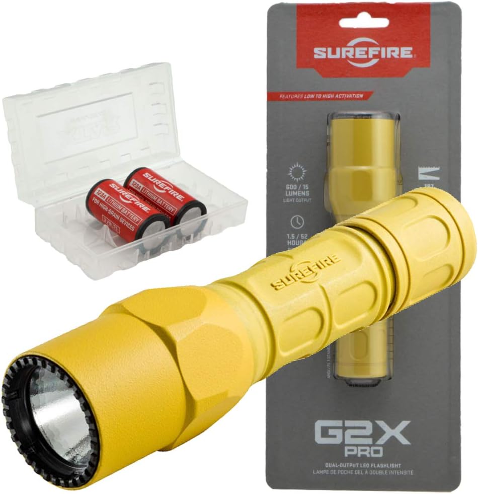The G2X Pro Flashlight Yellow also features an easy-to-grip handle and convenient size for comfortable carrying to any destination. Whether you're camping, hiking or simply need reliable lighting at home or work, this flashlight won't disappoint.