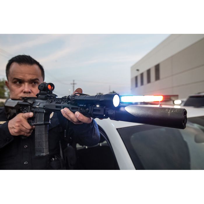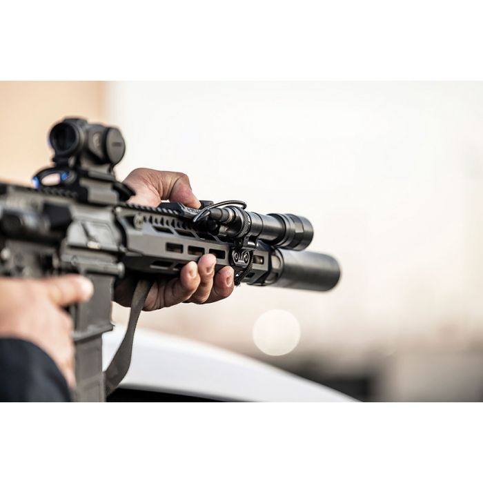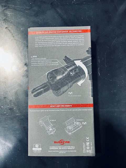 - See Farther. The M640DFT-PRO Turbo Scout Light Pro combines the best attributes of the standard M640 Scout Light Pro with high-candela performance and dual-fuel capability, and it delivers the farthest-reaching beam and longest runtime of any SureFire long-gun WeaponLight. Ideal for long-range target identification, the M640DFT-PRO projects a blinding, peak beam intensity of 100,000 candela, or 90,000 candela when powered by two 123 lithium batteries. Its precision reflector creates a tightly focused, concentrated shaft of light with minimal bounce when peering over, under or around barricades. At the same time, it provides ample spill light to help the user maintain situational awareness. Our Low-Profile Mount (LPM) delivers unprecedented versatility, allowing the user to optimize the light’s position relative to the rail and other attached firearm accessories. Rugged and reliable, the LPM easily and securely attaches to any MIL-STD-1913 or compatible with M-LOK rail. Constructed of lightweight aerospace aluminum, Mil-Spec hard anodized, and O-ring sealed to keep out the elements, the M640DFT-PRO is the best-performing, most durable, and most feature-rich WeaponLight for its size.