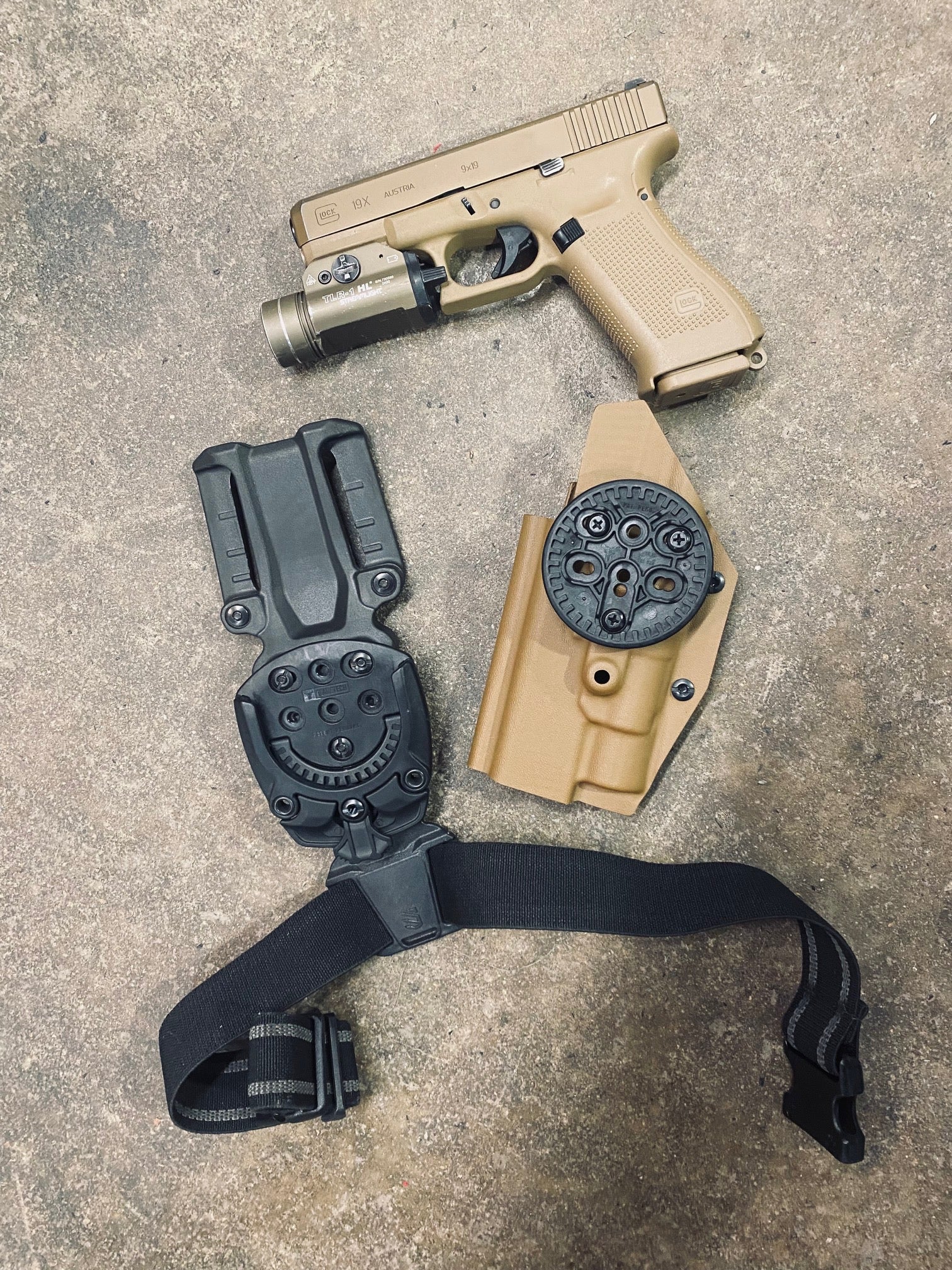 The Tek-Mount™ Receiver is attached to belt attachments, molle attachments, and other attachment options to allow the Tek-Mount™ to be attached to your preferred carry method. Meanwhile, the 360° Insert Disc is attached directly to your holster, sheath, mag pouch, or other carried items and slid into the receiver.
