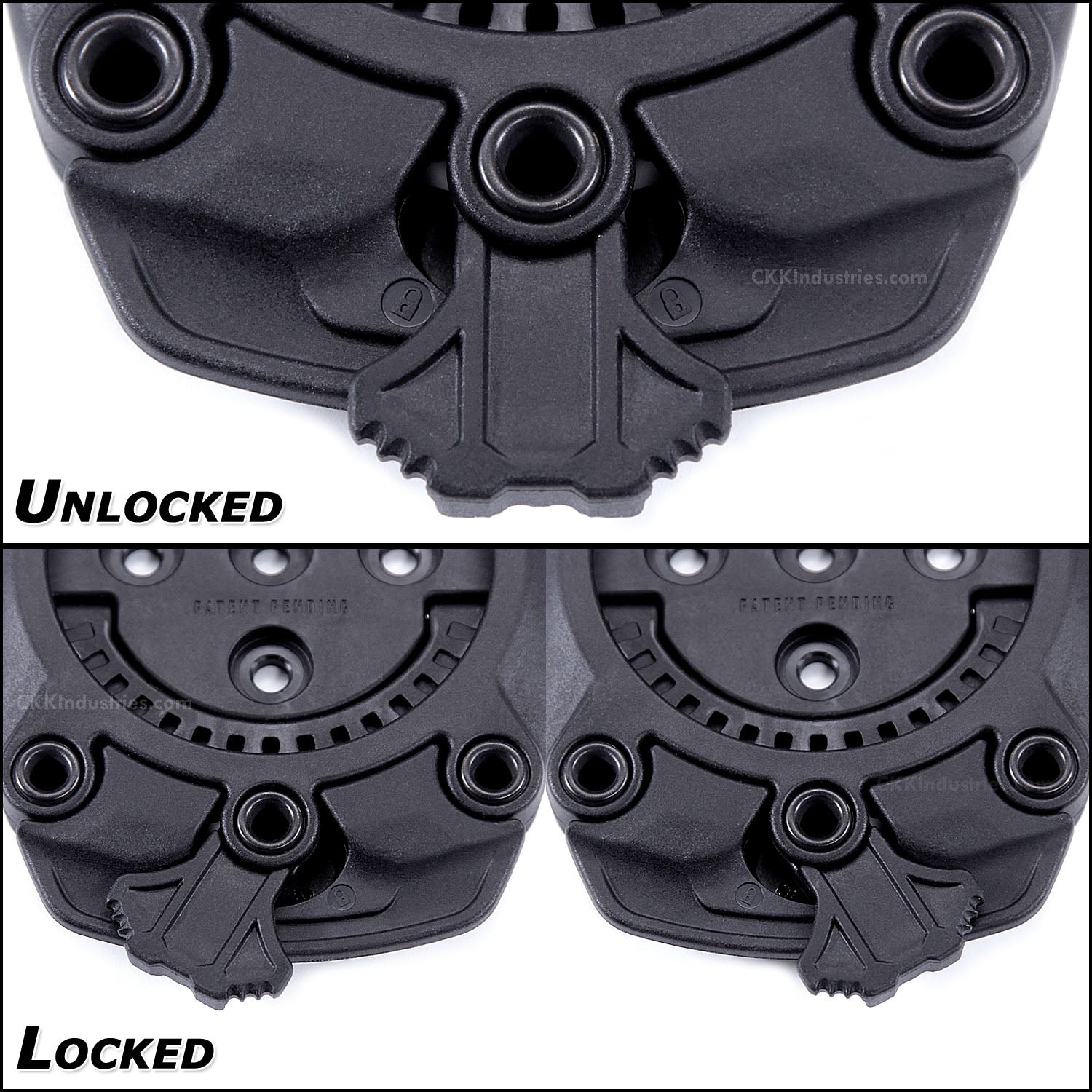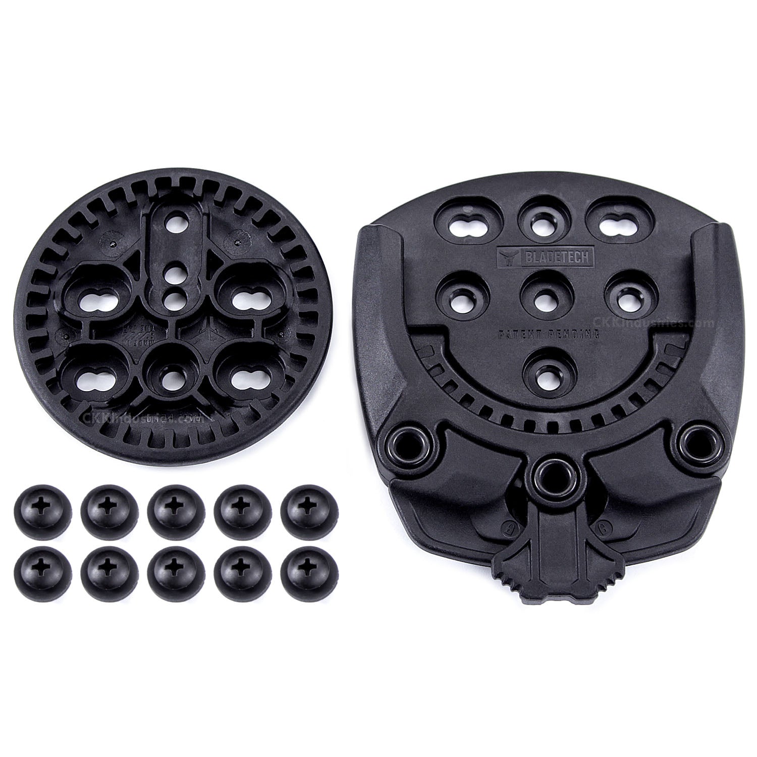 This is the Tek-Mount™ by Blade-Tech®. It is a two-part mounting system that provides 36 cant positions at 10-degree intervals for a full 360° degrees. It is easy to use and does not require any additional tools to change positions. Simply unlock the Tek-Mount™ receiver and press down on the release lever to change the position of your item.